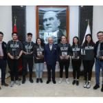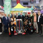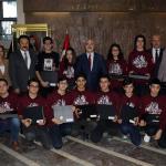 Mersin Tarsus Organize Sanayi Bölgesi bünyesinde eğitim veren Özel Şişecam Mesleki ve Teknik Anadolu Lisesi R3D3 Robot takımı öğrencileri, Akdeniz Belediye Başkanı Mustafa Muhammet ...