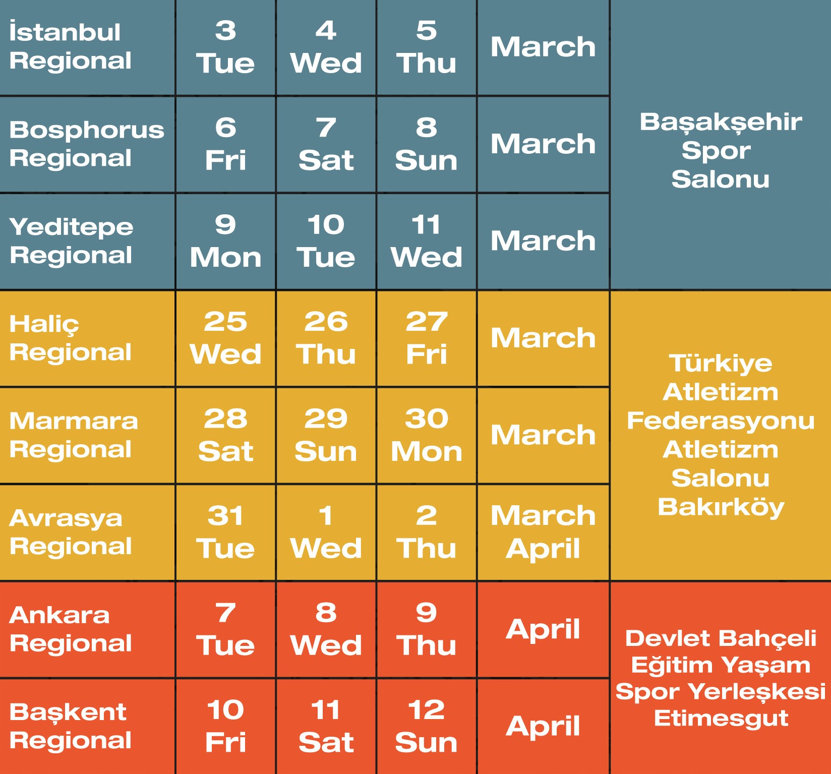 LEVEL 4 – Haliç Regional 25-27 March 2026, Türkiye Atletizm Federasyonu Atletizm Salonu