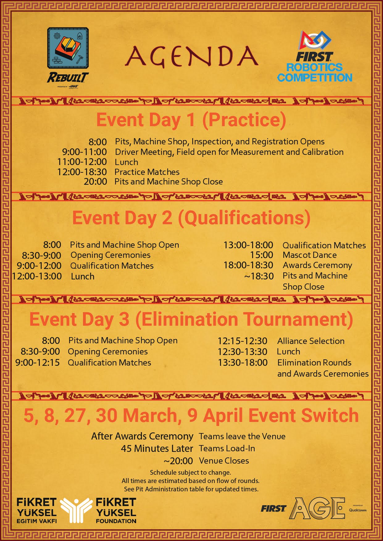 The purpose of this page is to provide information about the Turkish Regionals to help our guest teams prepare for and compete in our events. If any data on this page conflicts with that on the FIRST page, the FIRST data is valid.